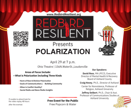 Mark your calendars!Many of us are feeling the effects of polarization more than ever — it influences how we connect, communicate, and even our mental well-being. Join us for a FREE community education and training hosted by Redbird Resilient, where we’ll explore what polarization is, why it matters, and how to navigate difficult conversations with greater clarity and connection.Presenters include David Ross, Executive Director of the Mental Health & Recovery Board of Ashland County; Dr. Jeffery Elbert, Chair and Assistant Professor of Communication Studies; and Dr. Craig Hovey, Director of the Ashland Center for Nonviolence and Professor of Religion at Ashland University. Together, they’ll share valuable insights and practical strategies for building understanding in these challenging times.Let’s come together to learn, listen, and strengthen our community! -